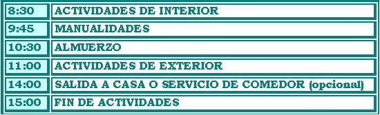 El horario que se llevará a cabo a lo largo del periodo de la "Escola d'Estiu Esportiva" será el siguiente:
